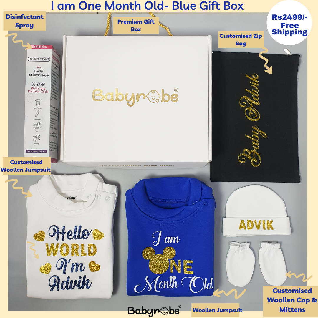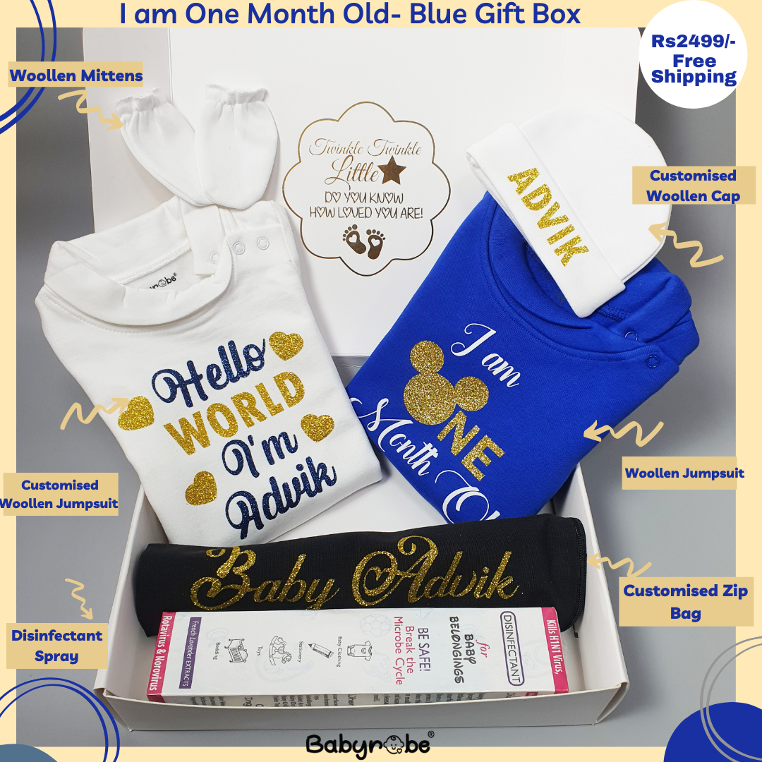 I am One Month Old (Blue Gift Box Woollen)