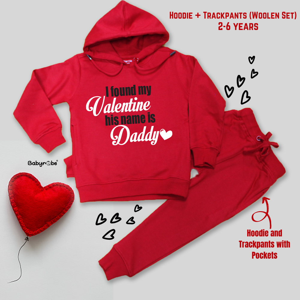 I found My Valentine His Name Is Daddy (Hoodie+Trackpants Woolen Set)