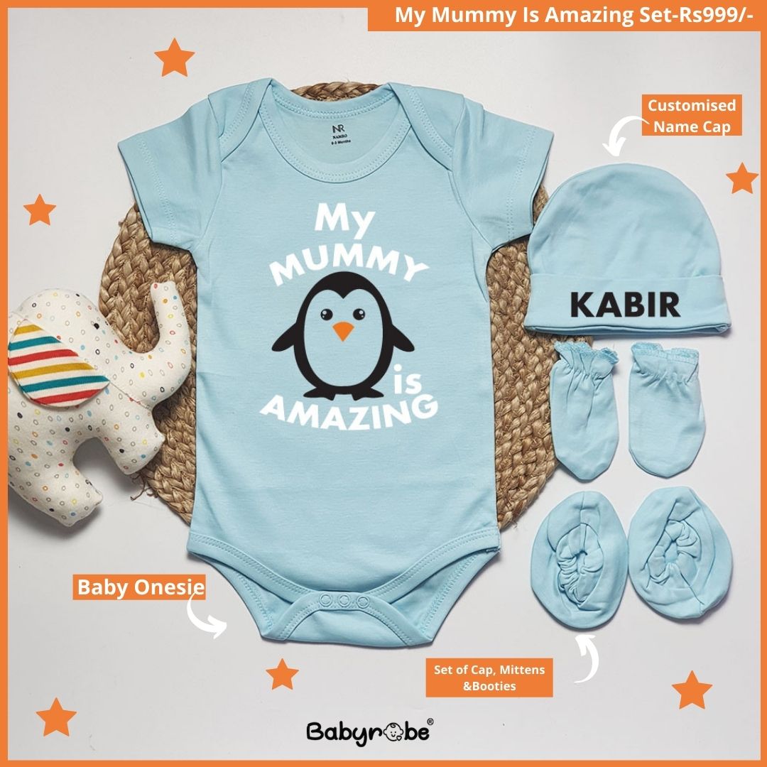My Mummy Is Amazing (Romper+Cap, Mittens & Booties)