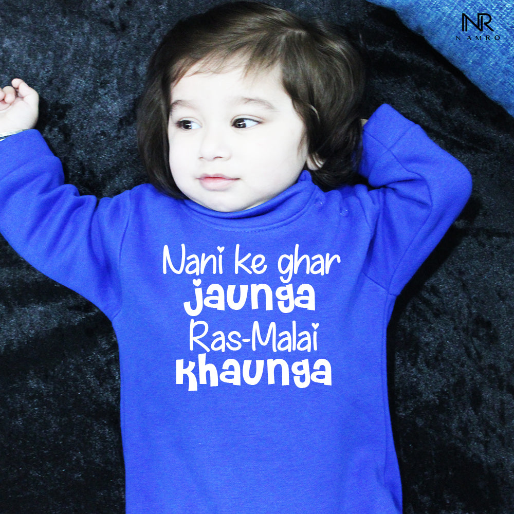 Nani Ke Ghar Jaunga Ras-Malai Khaunga (0-3 months Woollen Jumpsuit)