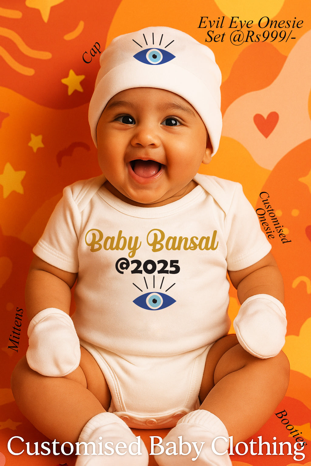 - Evil eye cap, Mittens & Booties.